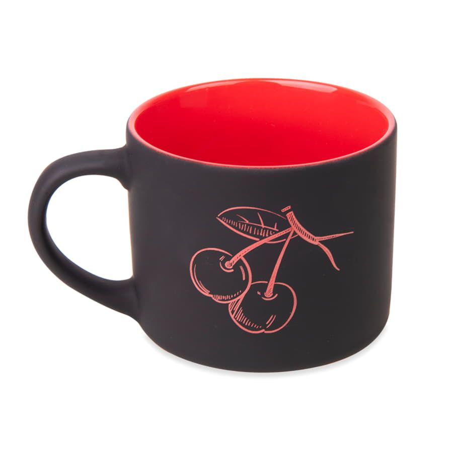 Кружка трендовой цилиндрической формы с черным прорезиненным покрытием.При гравировке подложка вскрывается в цвет внутренней части кружкиЦвет внутренней части близкий к Pantone 199CНе рекомендуется мыть в посудомоечной машине