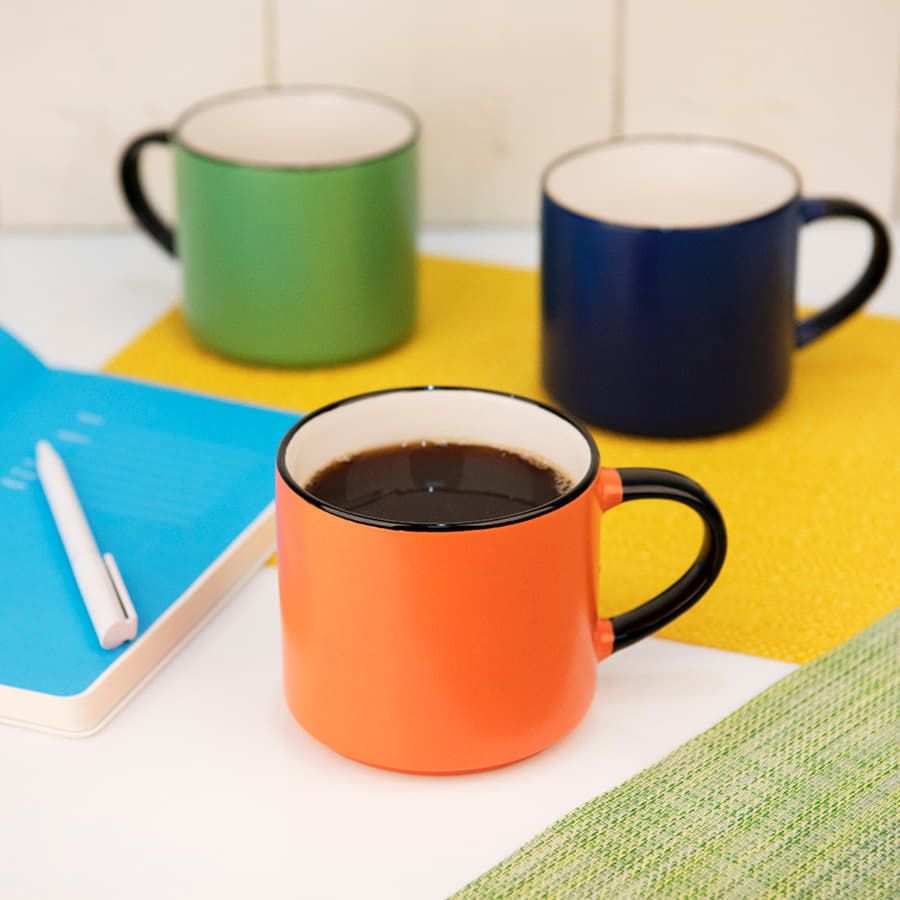 Ёмкая кружка трендовой цилиндрической формы с матовым покрытием.Яркий цветной корпус с черной ручкой и кантом по краю.Цвет близкий к Pantone 072C