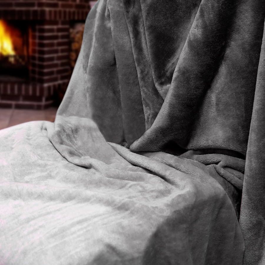 Плотность пледа 280 гр м, размер 130*150 см. Плед окрашен градиентом - плавный переход от светло-серого к темно-серому оттенку.