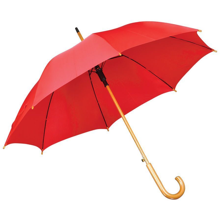 Зонт-трость с деревянной ручкой, полуавтомат. Диаметр купола: 103 см, длина стержня 90 см. Состав купола: 100% полиэстер 190T Состав спиц: металл. Ручка деревянная. Цвет купола: близкий к пантону 186C.