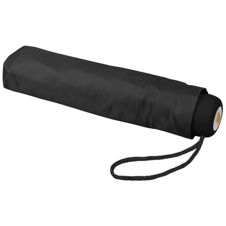 Зонт в 3 сложения, механический Диаметр купола: 95см Состав купола: 100% полиэстер 190T Состав спицы и стержень: металл Пластиковая ручка с soft - touch поверхностью. Длина ручки зонта в открытом состоянии 54,5 см от основания Цвет купола близкий Pantone Black. Зонт в чехле из основного материала.