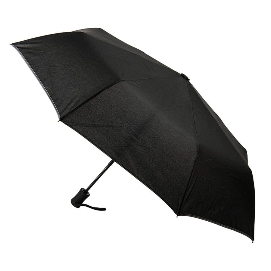 Складной зонт в 3 сложения, автомат.Диаметр купола: 100 см.Состав купола: 100% полиэстер 190T, эпонж.Состав стержня: металл.Состав спиц: металл..Ручка: пластик.По краю купола есть кант из светоотражающего материала.Зонт упакован в чехол из материала + футляр на молнии.