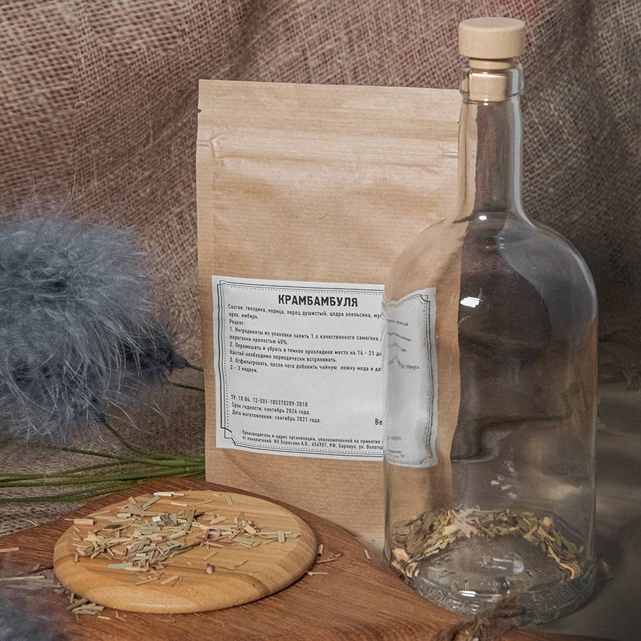 Сам Себе Сомелье - коллекция сборов трав и специй для приготовления уникальных напитков. Набор для приготовления 1 литра «Крамбамбули». В состав набора входят: - набор трав и специй " Крамбамбуля" (гвоздика, корица, перец душистый, цедра апельсина, мускатный орех, имбирь.), - бутылка 1 л, - пробка Т-образная, - стружка бумажная, - коробка подарочная арт. 34930, размер 30 х 25 х 15 см Настойка появилась в 18 веке в Великом княжестве Литовском на территории современной Беларуси. Считалась напитком знати, поскольку в то время завезенные с Индии специи были очень дорогими. Название «крамбамбуля» этот напиток получил от немецкого ликёра «Крамбамбули». Название немецкого ликёра стало нарицательным: на сленге европейских студентов словом «krambambuli» обозначались различные крепкие спиртные напитки. В немалой степени популярность этого слова была связана с одноименной студенческой песней, первоначальный вариант которой был создан в 1745 году. У напитка с такой веселой историей пряный слегка сладкий вкус.Крамбамбуля легко пьется и хорошо согревает в холодную погоду. Можно сказать, что это белорусский аналог глинтвейна или грога, хотя зачастую подается холодным. Хочешь сделать хорошо? Сделай это сам! Рецепт приготовления указан на упаковке. ВНИМАНИЕ Набор поставляется в разобранном виде в количестве кратном шести.