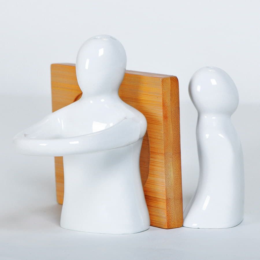 Фарфоровая пара из солонки и перечницы необычной формы символизируют любовь, единение, доверие и привязанность. Ученые говорят, что пять объятий в сутки позволяют зарядиться эндорфинами на весь день, а эндорфины, как известно, повышают иммунитет. Когда люди обнимаются, у них стабилизируется сокращение сердечной мышцы и, как следствие, нормализуется кровяное давление. Кстати, с 1986 года 21 января отмечается Международный день объятий (International Hug Day). Это ли не повод преподнести актуальный и значимый подарок? Такой дуэт будет эффектно и оригинально смотреться как на домашней кухне, так и в офисе, на деловом завтраке или бизнес-ланче с партнерами, за столом переговоров или корпоративе. Подставка выполнена из бамбука – экологического материала, который отлично подходит для кухонных принадлежностей. В нем сделаны специальные выемки, чтобы эта изящная пара никогда не рассталась, а их совместный танец продолжался вечно. Набор поставляется в подарочной коробке.