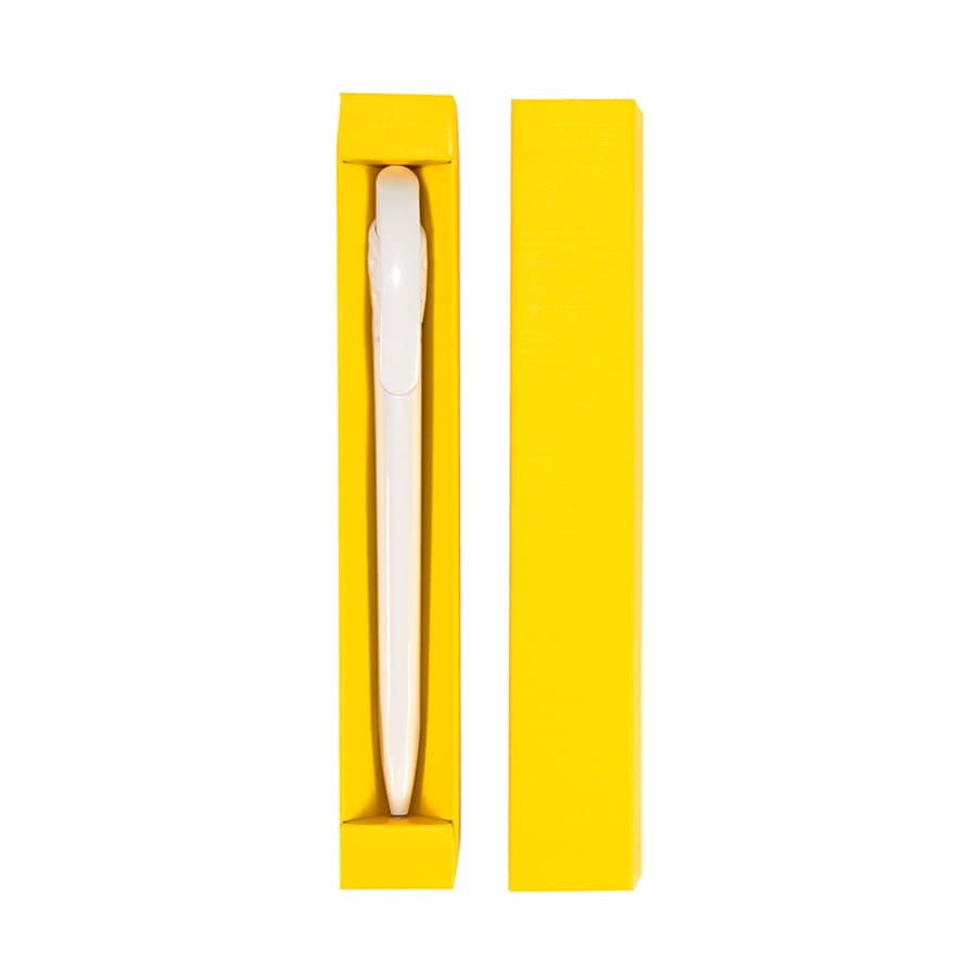Футляр из дизайнерского картона с тиснением и ламинацией. Подходит для ручек и карандашей длиной до 145 мм и диаметром до 12 мм. Цвет, близкий к Pantone 123C.