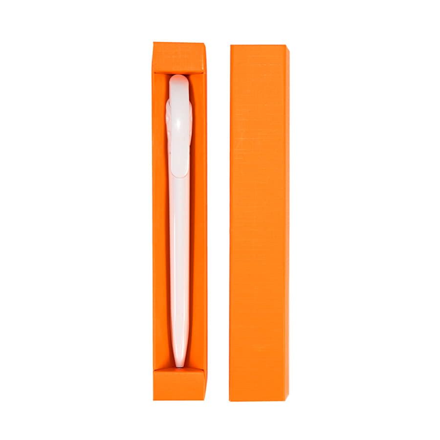 Футляр из дизайнерского картона с тиснением и ламинацией. Подходит для ручек и карандашей длиной до 145 мм и диаметром до 12 мм. Цвет, близкий к Pantone 1585C и 1645С.