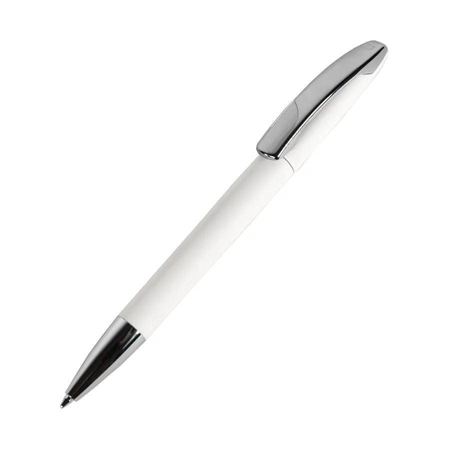 Pantone, близкий к White С. Поворотный механизм. Стержень Jumbo с синими чернилами Dokumental обеспечивает до 2500 м письма. Толщина пишущего узла 1 мм. Презентабельная ручка VIEW – идеальный подарок бизнес-партнеру. Стильная и строгая, но при этом элегантная и изящная, она воплощает в себе основной принцип современной роскоши – безупречное качество исполнения, подчеркнутое сдержанными формами, в сочетании с функциональностью. Приятные глазу классические благородные оттенки, хромированные металлические клип и носик, корпус с отделкой soft-touch – все для того, чтобы рекламируемый бренд выглядел эксклюзивно и престижно. А металлический клип отлично подходит для лазерной гравировки. _____ Вся продукция MAXEMA воплощает в себе европейский подход к управлению качеством. Каждый этап – от дизайна и разработки прототипов до схода готовой ручки с конвейера – не просто контролируется европейскими специалистами, но и осуществляется непосредственно в Италии, с соблюдением строгих внутренних стандартов. MAXEMA производит ручки из качественного ABS-пластика от немецких производителей. Он нетоксичен, ударопрочен, устойчив к перепадам температуры и сохраняет насыщенный цвет. Обеспечивает идеальную поверхность для нанесения логотипа. MAXEMA соблюдает международные стандарты безопасности продукции. Европейский регламент REACH и американский TSCA обязывают компанию регистрировать все химические вещества, которые используются в производстве. Директива RoHS запрещает использование опасных соединений, таких как свинец, ртуть, хром, кадмий и ряда других токсичных материалов.