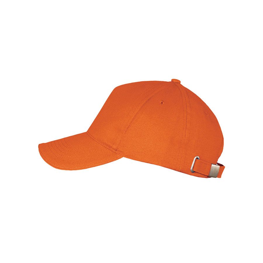 Бейсболка LONG BEACH без лобового шва с жестким козырьком "сэндвич". 4 вышитых люверса, регулируемая металлическая застежка. Цвет близкий к PANTONE Orange 021C 58 см - минимальный размер, с помощью застёжки его можно увеличить до необходимого.