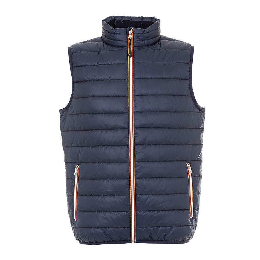 Основная ткань: цвет, близкий к Pantone 539 U, подкладка: цвет, близкий к Pantone 430 C Легкий жилет из нейлона. Небольшой воротник-стойка. Контрастная облегленная пластиковая молния со съемным пуллером. Два передних кармана на молнии. Один внутренний карман на липучке. Cтягивающая эластичная резинка по низу изделия и в рукавах.