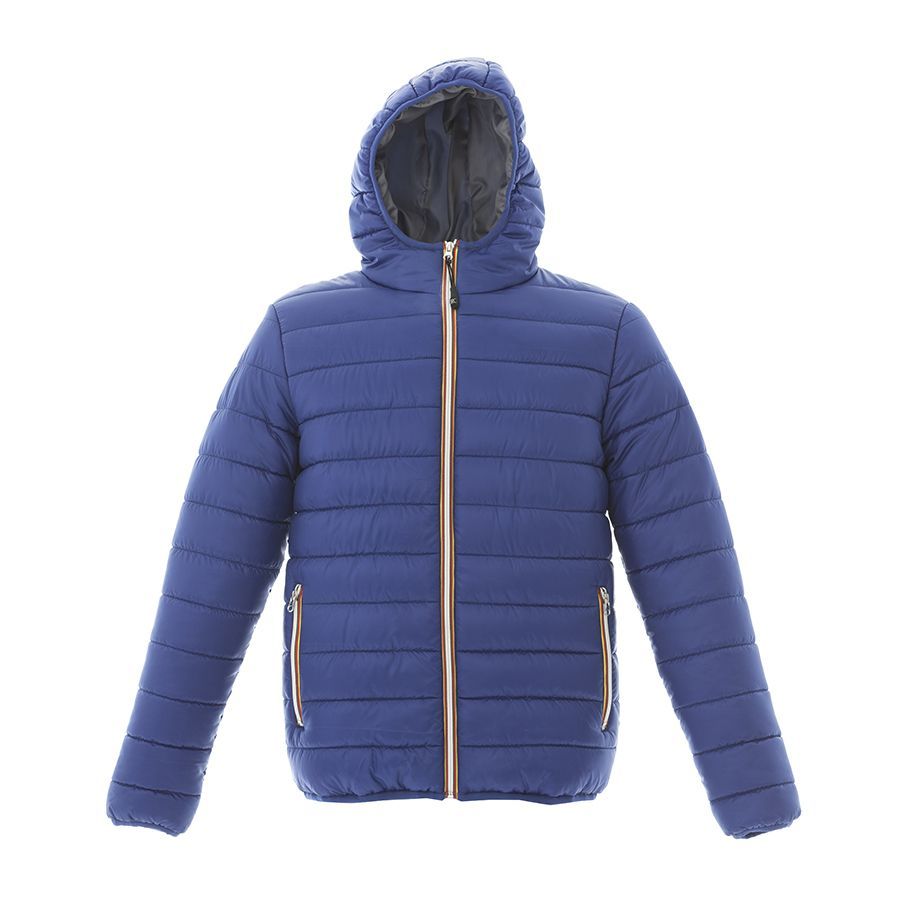 Основная ткань: цвет, близкий к Pantone Reflex Blue U, подкладка: цвет, близкий к Pantone 424 C Мягкая и легкая куртка из нейлона. Контрастная облегченная пластиковая молния со съемным пуллером. Два кармана на молнии. Внутренний карман на липучке. Манжеты рукавов, капюшон и низ куртки обрамлены эластичной резинкой.