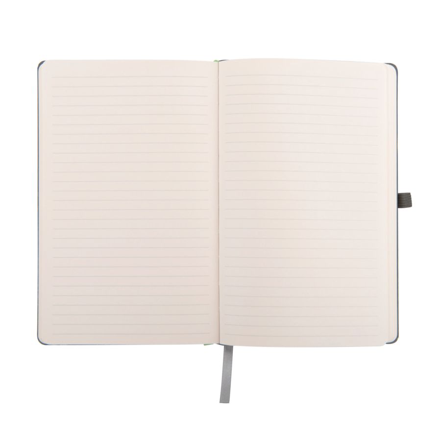 Самый популярный блокнот в твердой обложке, с эластичной резинкой, пенхолдером и ляссе в тон. Термоактивный классический PU материал Velvet Цвет обложки, близкий к Pantone 423C Внутренний блок 256 страниц в линейку Идеально скругленные углы блока Перфорированные 8 последних листов Кремовая FSC бумага 70г м2 Карман для мелочей Индивидуальная упаковка: фирменный сливбокс thINKme