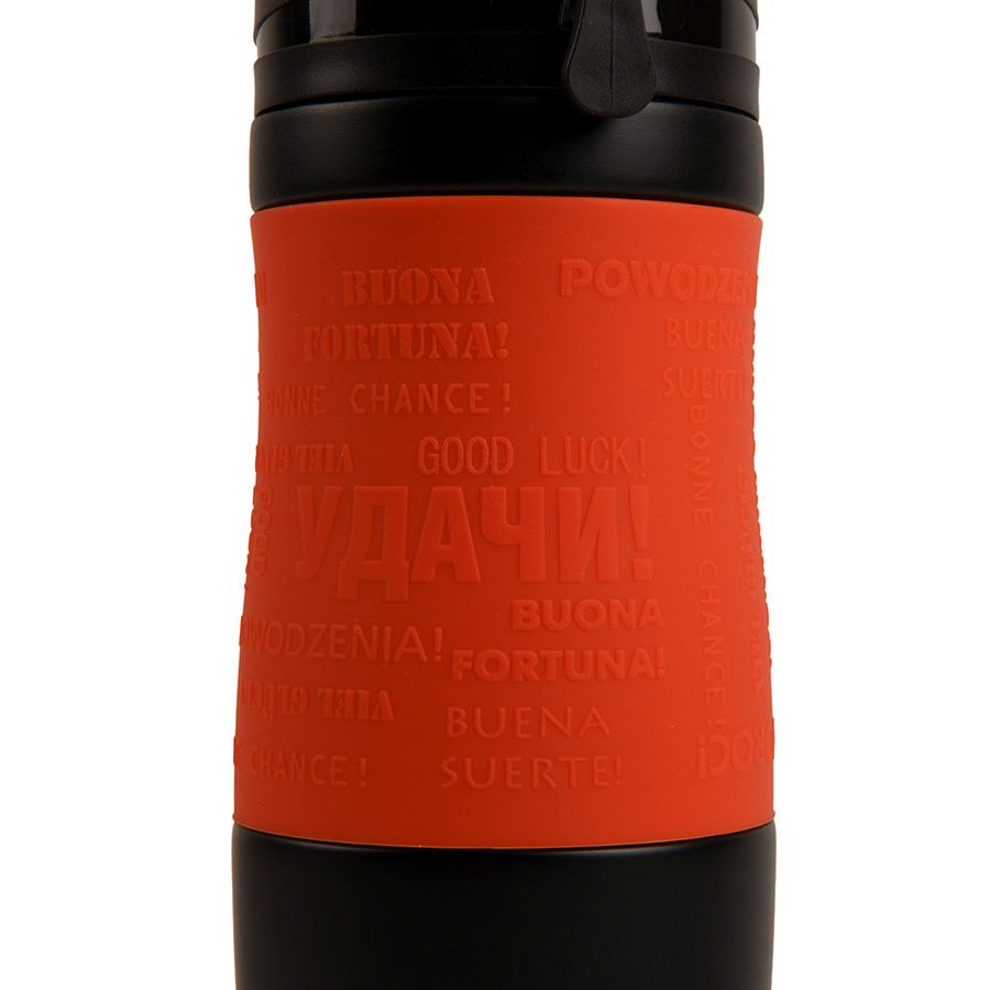 Удачи! Яркая термокружка с силиконовой манжетой. На манжете - пожелание"Удачи!" на всех языках. Сохраняет тепло до 12 часов. Pantone 199С. Термокружки сделаны из 304 нержавеющей стали. Вы сможете сохранять ваши напитки горячими до 6 часов и холодными до 12 часов. Подходит для любых напитков. Можно использовать как для горячих, так и холодных. Как для безалкогольных, так и алкогольных. Благодаря уникальному покрытию и форме, кружка не выскальзывает из рук. Стильный дизайн и яркие сочные цвета. Это не просто обычная кружка, но еще и модный аксессуар