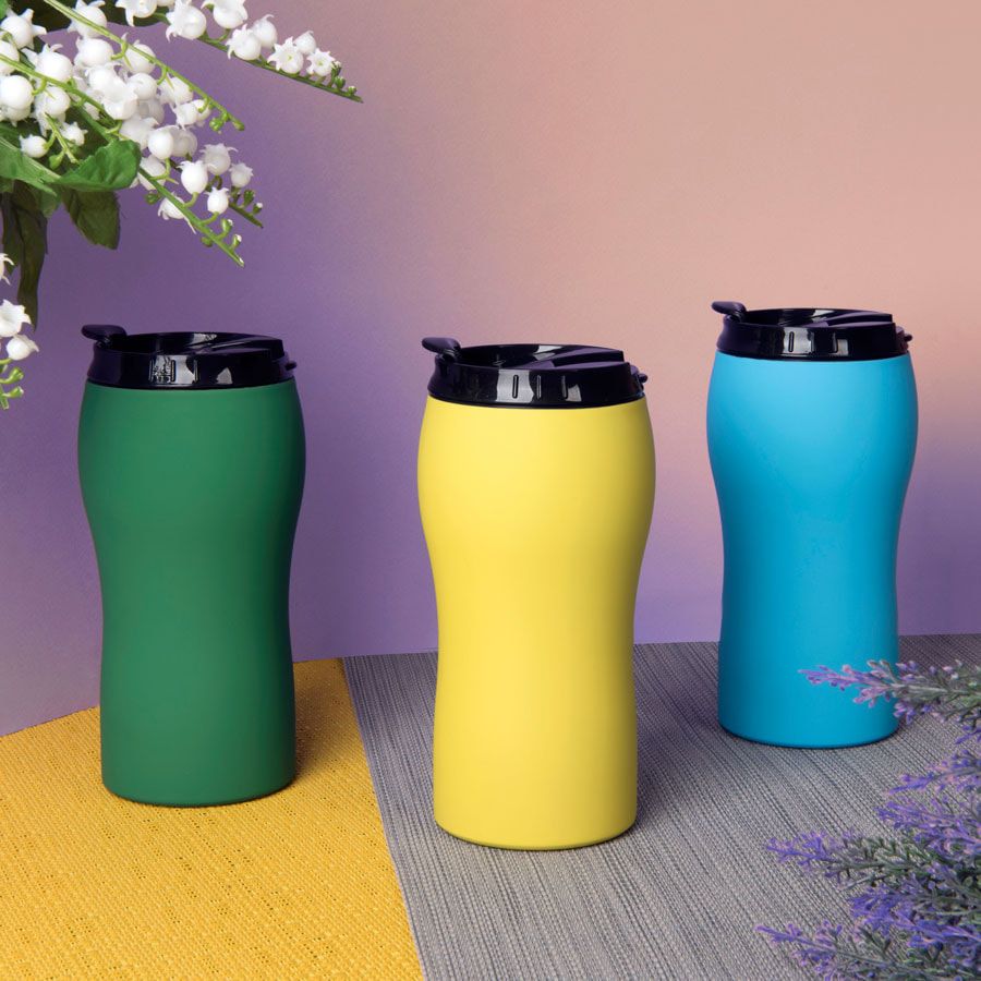 Вакуумная термокружка с покрытием софт тач. Гравировка открывается серебром. Кружка упакована в картонную коробку. Держит температуру напитков: горячие - до 6 часов, холодные - до 12 часов.