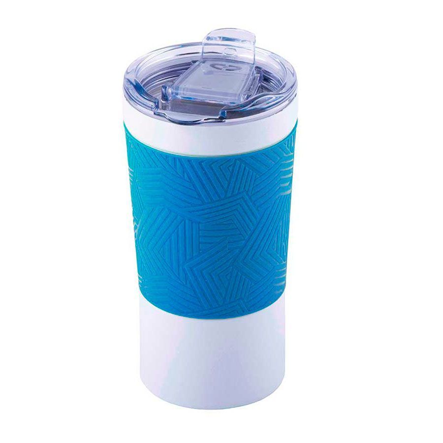 Вакуумная термокружка с покрытием "ice flower" и силиконовой манжетой.Закручивающаяся крышка выполнена из высококачественного прозрачного пластика - тритан.Сохраняет температуру горячих напитков до 6 часов, холодных напитков - до 8 часов.Подходит для автомобильных подстаканников. Цвет близкий к pantone 2382-2383С.