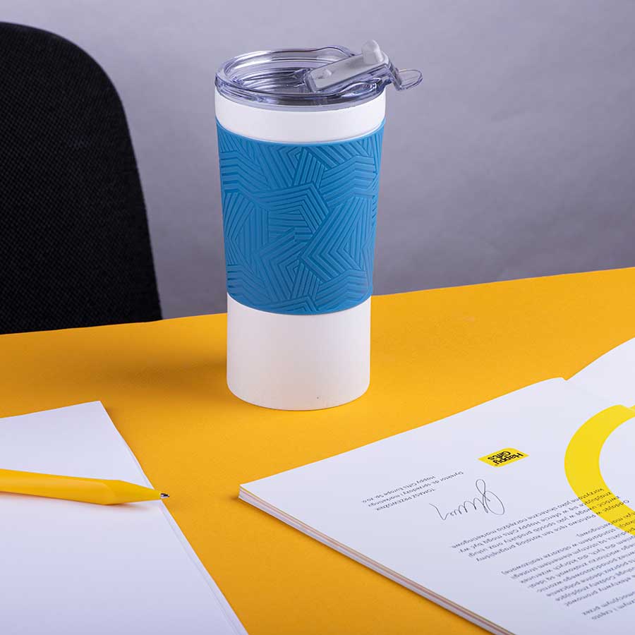 Вакуумная термокружка с покрытием "ice flower" и силиконовой манжетой. Закручивающаяся крышка выполнена из высококачественного прозрачного пластика - тритан. Сохраняет температуру горячих напитков до 6 часов, холодных напитков - до 8 часов. Подходит для автомобильных подстаканников. Цвет близкий к pantone 199C
