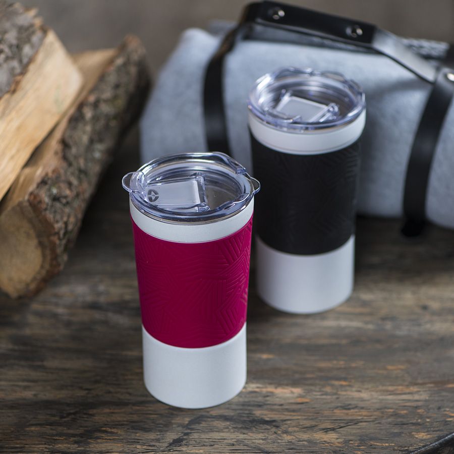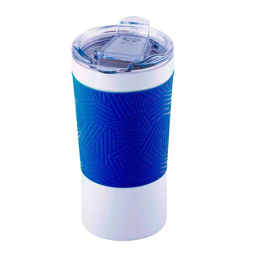 Вакуумная термокружка с покрытием "ice flower" и силиконовой манжетой.Закручивающаяся крышка выполнена из высококачественного прозрачного пластика - тритан.Сохраняет температуру горячих напитков до 6 часов, холодных напитков - до 8 часов.Подходит для автомобильных подстаканников. Цвет близкий к pantone 2736C.