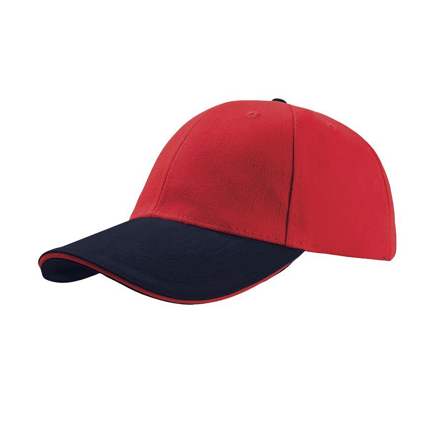 Бейсболка LIBERTY SANDWICH из плотного хлопка - одно из лучших решений для промомероприятий и корпоративной формы: - 6 клиньев, - 6 вышитых люверсов для лучшей вентиляции, - изогнутый козырек «сэндвич» с декоративным кантом, - металлическая застежка.* Допустим незначительный разнотон.Купол: цвет близкий к Pantone 186 C или 200 С, козырек: цвет близкий к Pantone 289 С; цвет канта близкий к Pantone 186 C или 200С 58,5 см - средний размер, с помощью застёжки его можно увеличить или уменьшить до необходимого.