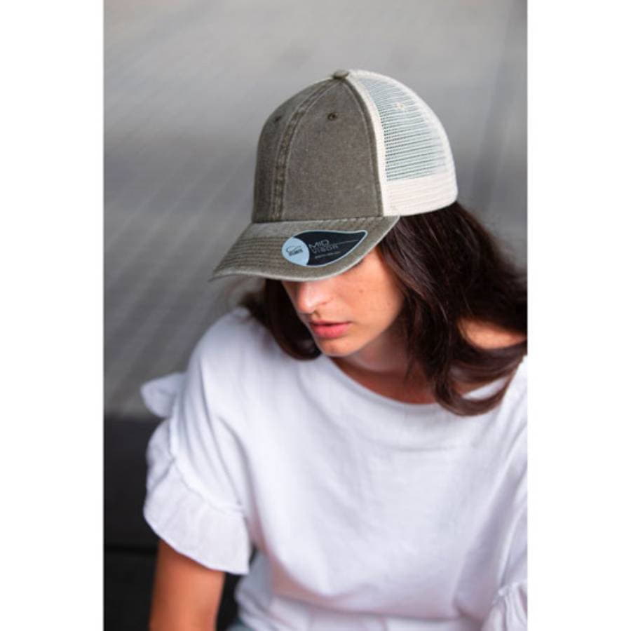 Стильная мягкая бейсболка-тракер CASE. Хлопок, используемый для изготовления бейсболки CASE, окрашивается с помощью специального порошкового пигмента, благодаря чему достигается эффект состаривания. Такой метод – делаве - фактически не окрашивает материал, а окрашивает только внешний слой, в отличие от традиционных красителей, которые полностью проникают в ткань. - 6 клиньев, - 6 вышитых люверсов, - лоб из мягкого варёного хлопка, - задняя часть из сетки, - изогнутый козырек средней длины, - застёжка на липучке. Цвет, близкий по тону к PANTONE 7540 C58 см - минимальный размер, с помощью застёжки его можно увеличить до необходимого.
