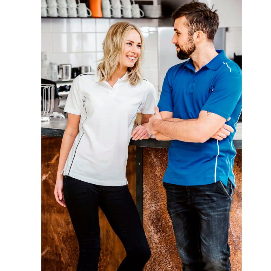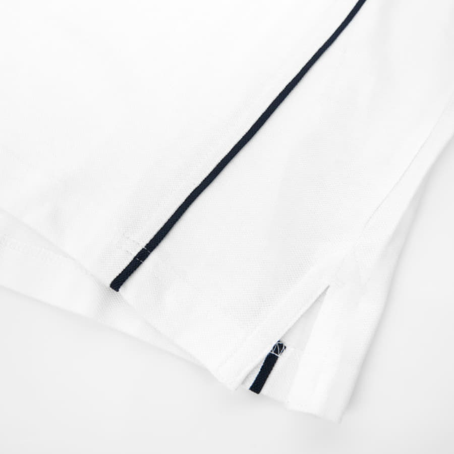 Эластичный, держащий форму воротник. Усиленная планка с перламутровыми пуговицами. Контрастный кант в швах подчеркивает приталенный силуэт.