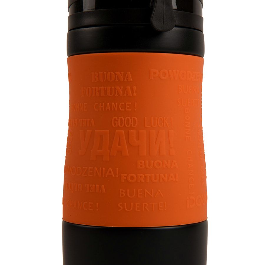 Удачи! Яркая термокружка с силиконовой манжетой. На манжете - пожелание"Удачи!" на разных языках. Pantone 165C. Термокружки сделаны из 304 нержавеющей стали. Вы сможете сохранять ваши напитки горячими до 6 часов и холодными до 12 часов. Подходит для любых напитков. Можно использовать как для горячих, так и холодных. Как для безалкогольных, так и алкогольных. Благодаря уникальному покрытию и форме, кружка не выскальзывает из рук. Стильный дизайн и яркие сочные цвета. Это не просто обычная кружка, но еще и модный аксессуар