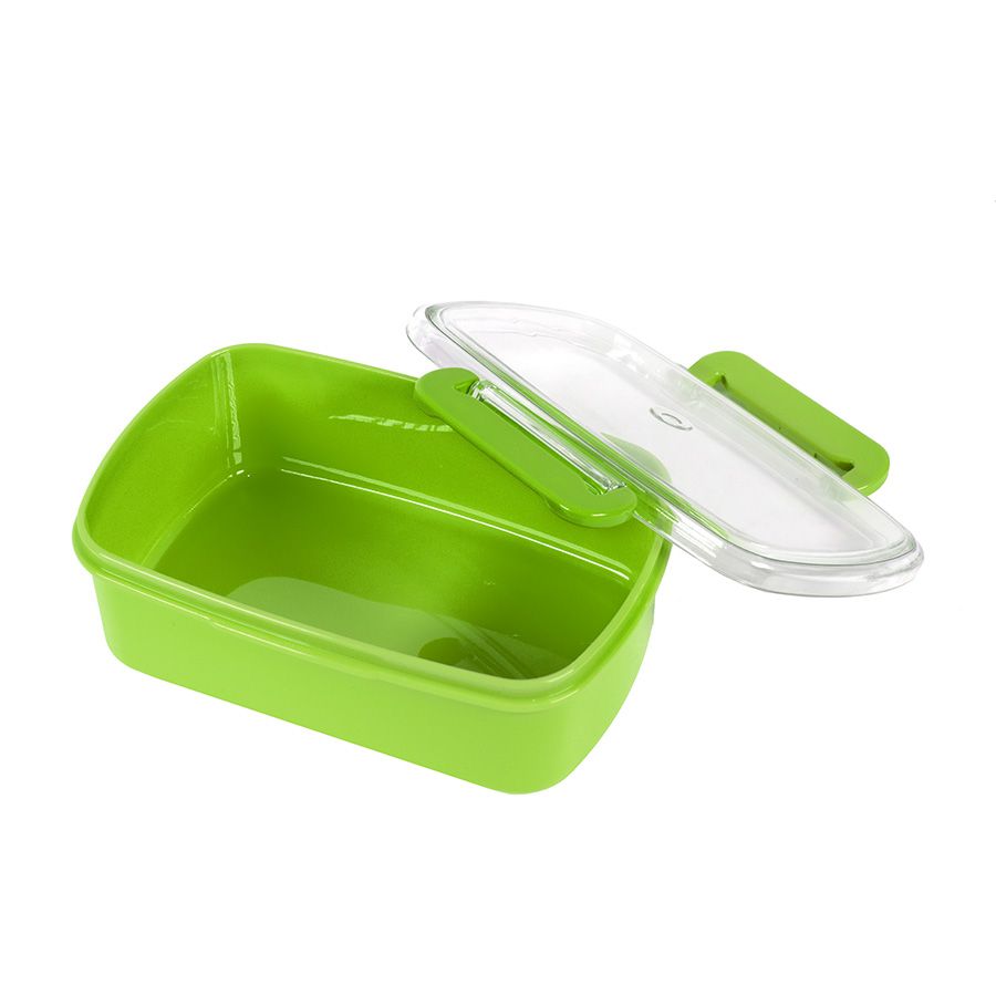 Ланч-бокс с прозрачной крышкой. Не герметичный. Подходит для использования в микровоолновой печи (со снятой крышкой), в посудомоечной машине, в морозильной камере. Цвет близкий к Pantone 368C Корпус выполнен из PP-пластика. BPA-free (не содержит бисфенол А).