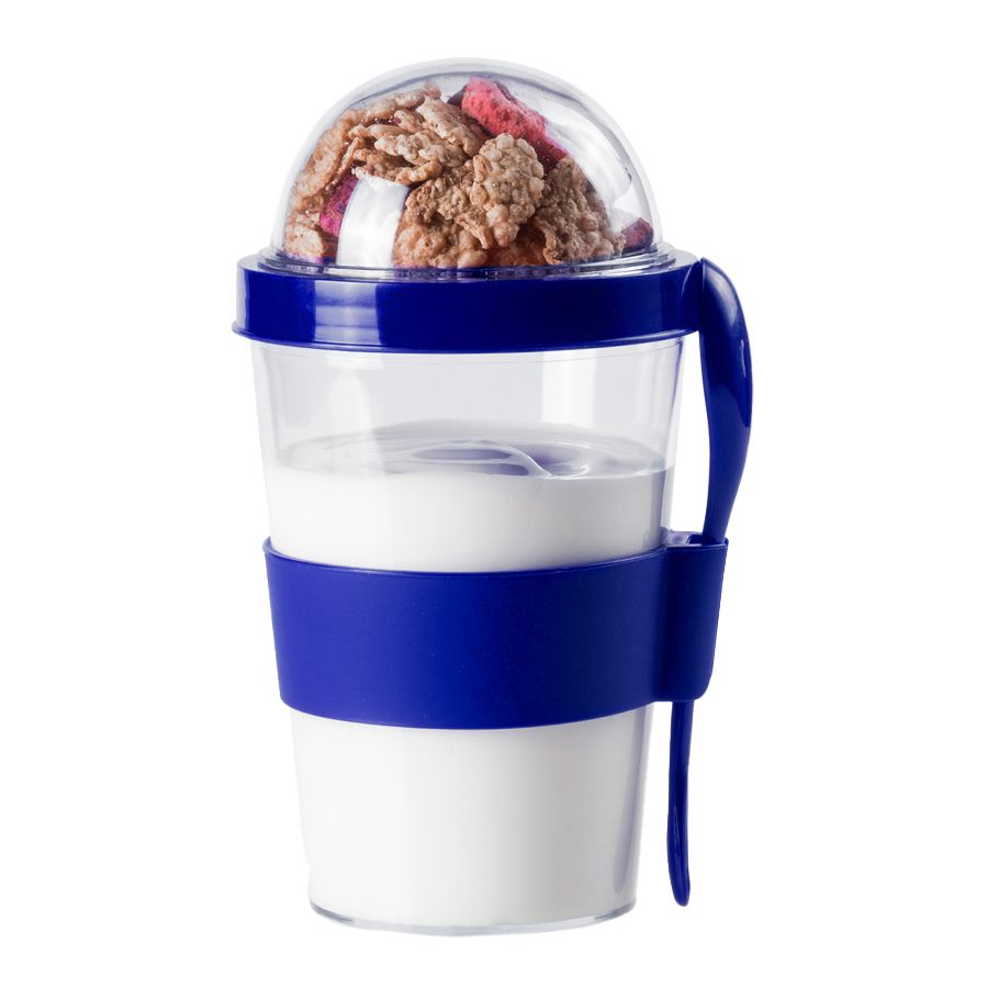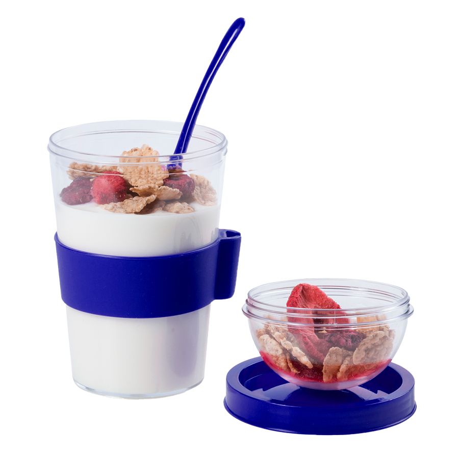 Пластиковый контейнер для еды. В крышку встроен отдельный бокс. Ложка входит в комплект. Она очень удобно крепится на специльном держателе и это позволит не потерять ее.Индивидуальная упаковка - ПЭ пакет