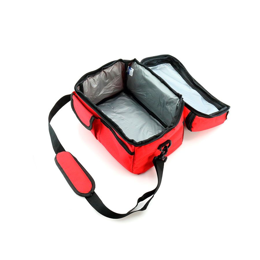 Универсальная сумка-холодильник из прочного полиэстера 600D с двумя независимыми отделениями на молнии. С 2 передними карманами, один из которых застегивается на липучку, а сзади - карман из эластичной сетки. Внутри изотермическое алюминиевое покрытием. Регулируемый плечевой ремень с мягкой подкладкой, с застежкой-карабином. Материал: полиэстер 600D PEVA