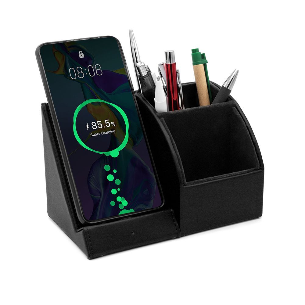 Настольный органайзер Prestige c беспроводной зарядкой и световым индикатором. Удобный инструмент для наведения порядка на рабочем месте. Вход: 9V/1.67A/5V/2A USB 2.0. Выход: Беспроводная зарядка 10W. В комплекте кабель USB и инструкция.