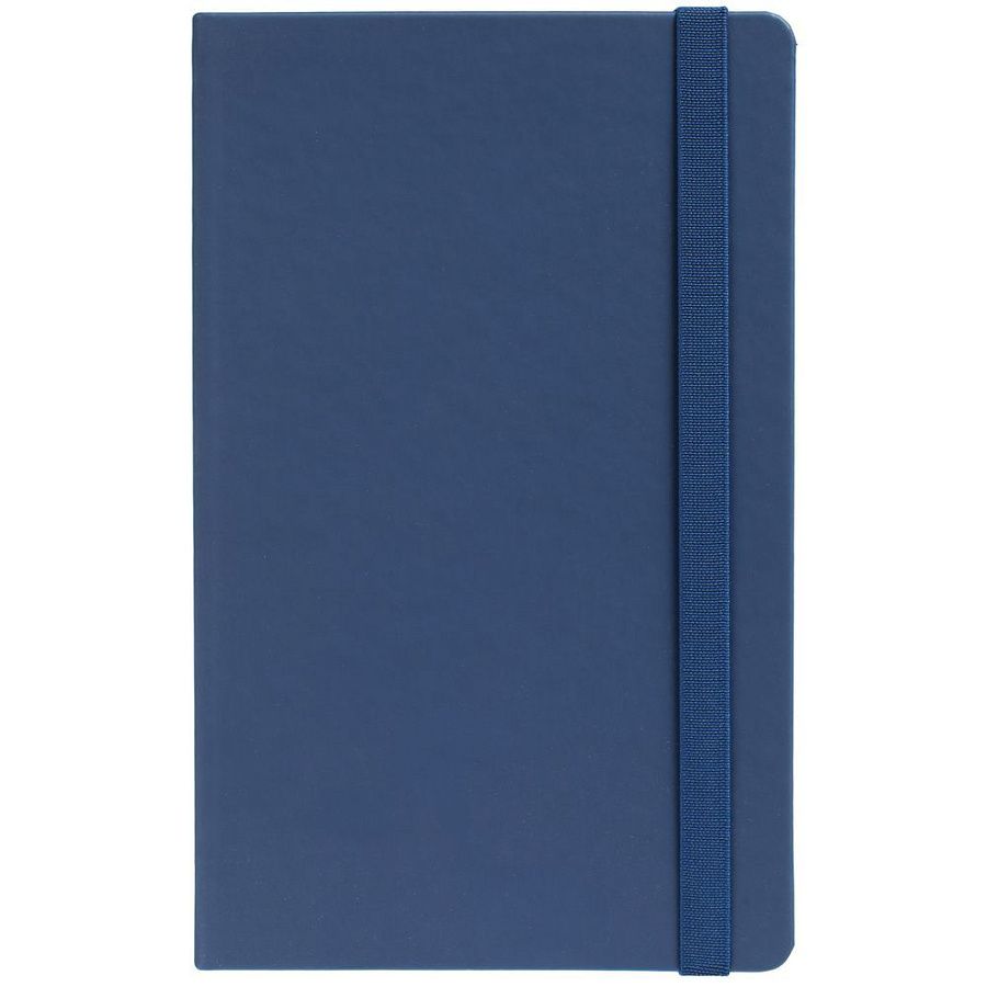 Блокнот в твердой обложке, выполнен из материала Soft Touch Pearl, синий НН, дополнен резинкой и ляссе в цвет обложки.