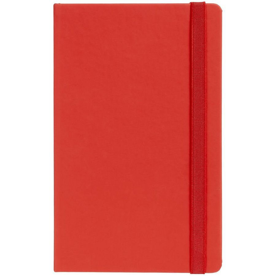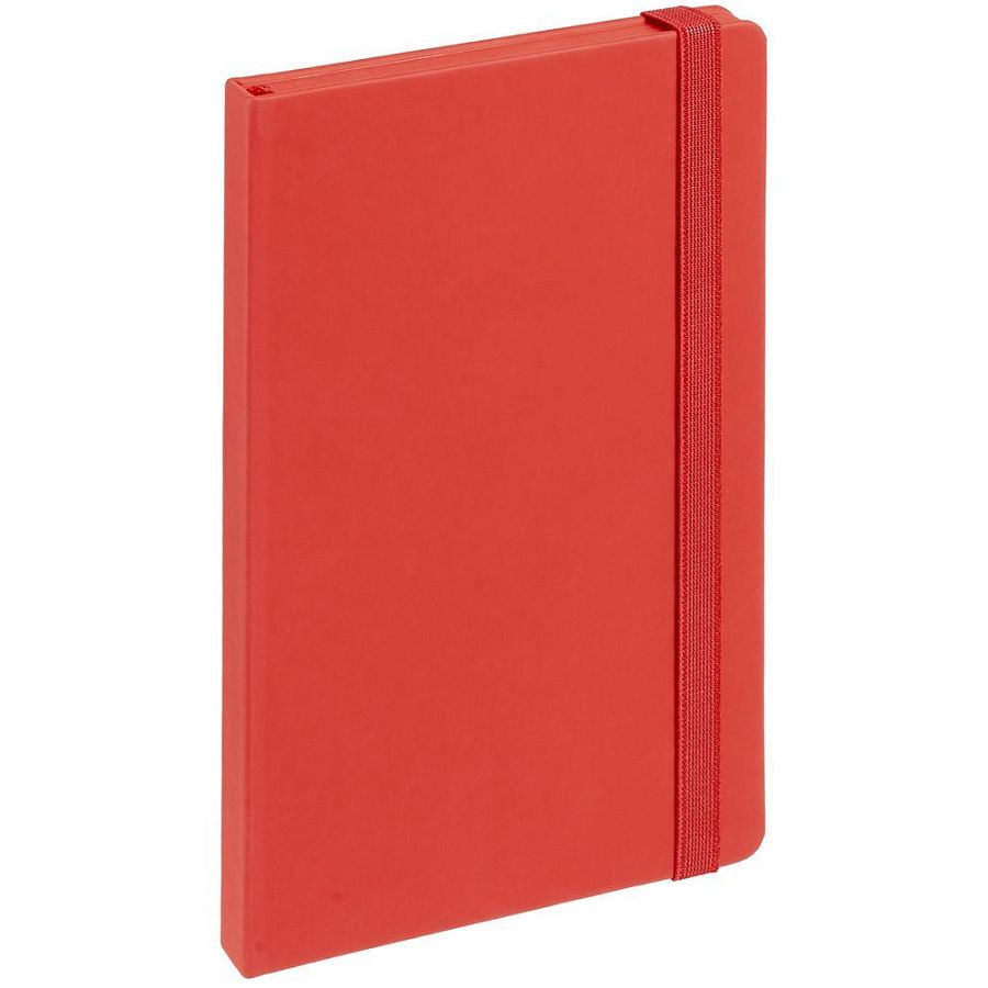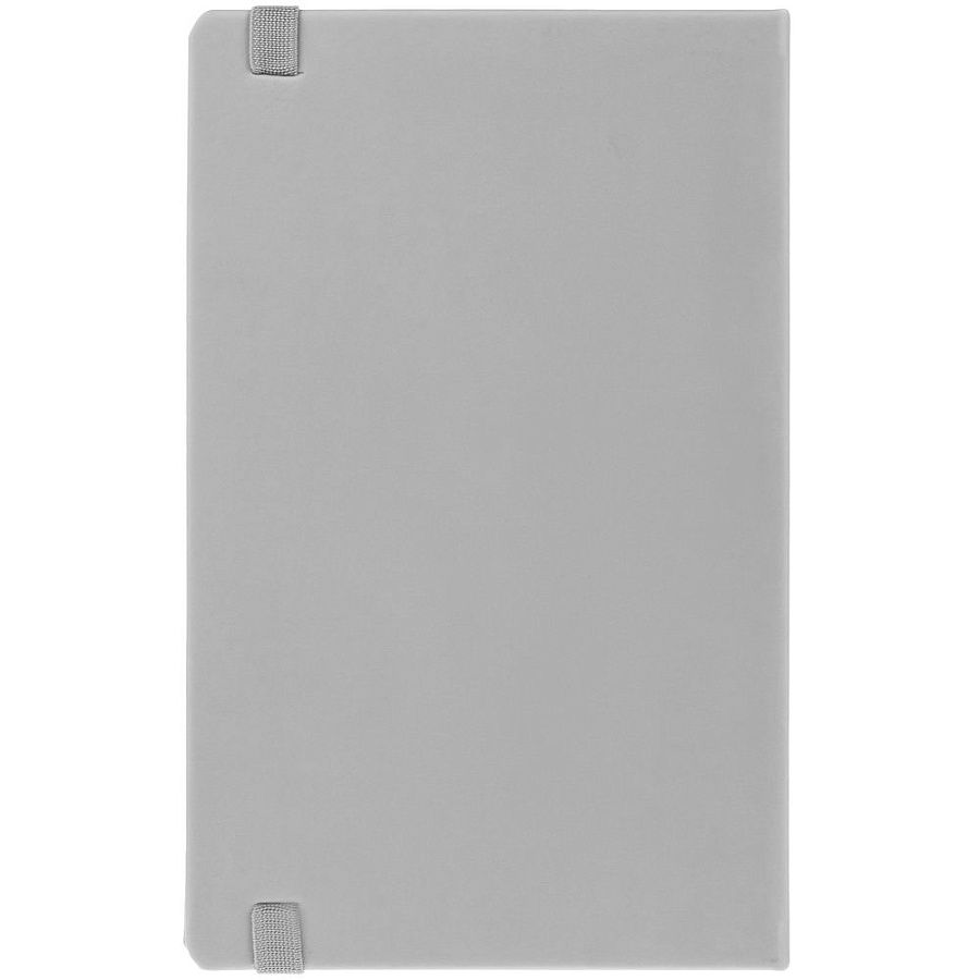 Блокнот в твердой обложке, выполнен из материала Soft Touch, серый СС, дополнен резинкой и ляссе в цвет обложки.