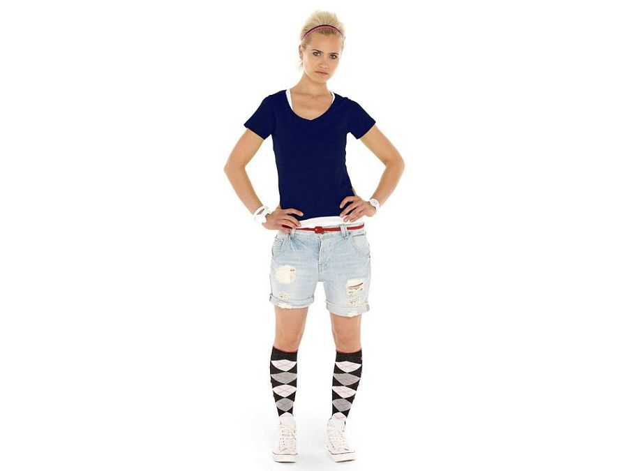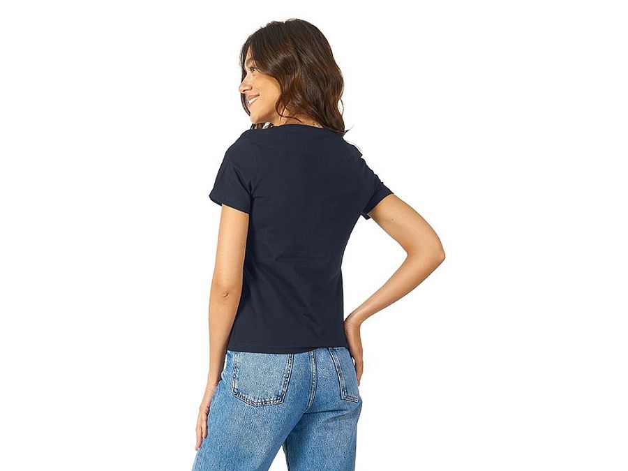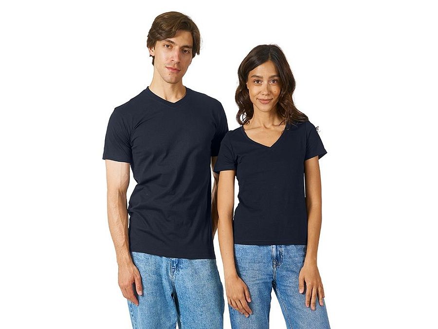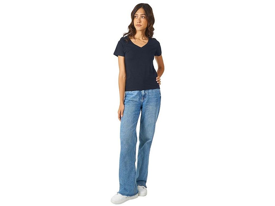 Женская футболка из натурального хлопка с элегантным V-образным вырезом. Материал отлично подходит для нанесения рекламной информации. Натуральная ткань не вызывает раздражения кожи.