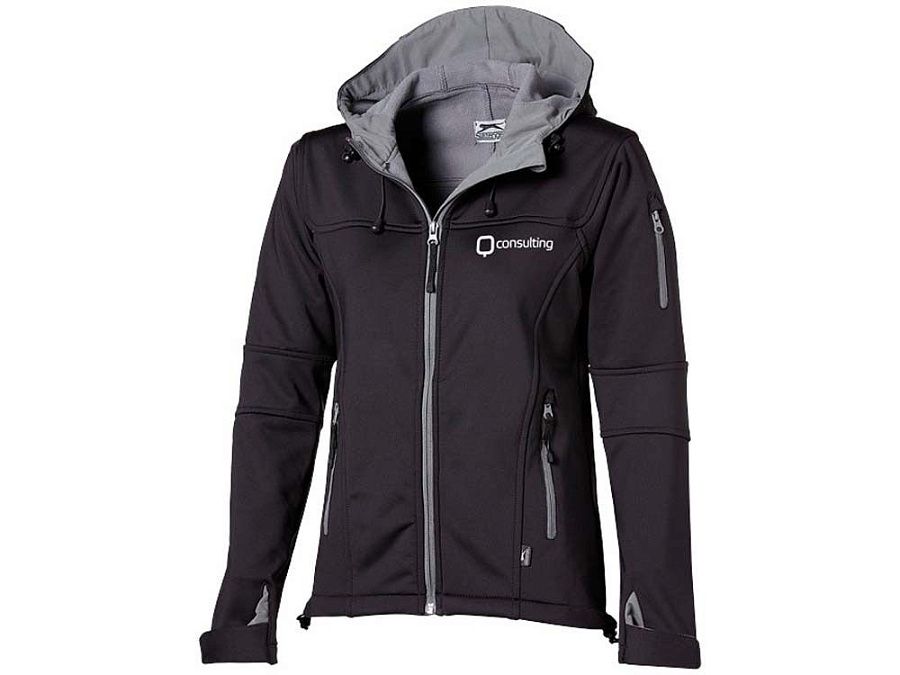 Женская куртка софтшел Match. Свободный покрой. Водонепроницаемая куртка Софт Шел. Дышащий. Стягивающийся капюшон на эластичном шнурке со стопперами. Передний карман и карман на рукаве на обратных молниях. Регулируемые манжеты на липучках. Завязки со стопперами внизу. Сзади длиннее чем спереди. Принт Slazenger возле левого кармана. Однослойная джерси гладкого переплетения из 100% полиэстера со 100% микрофлисом. 360 г/м².