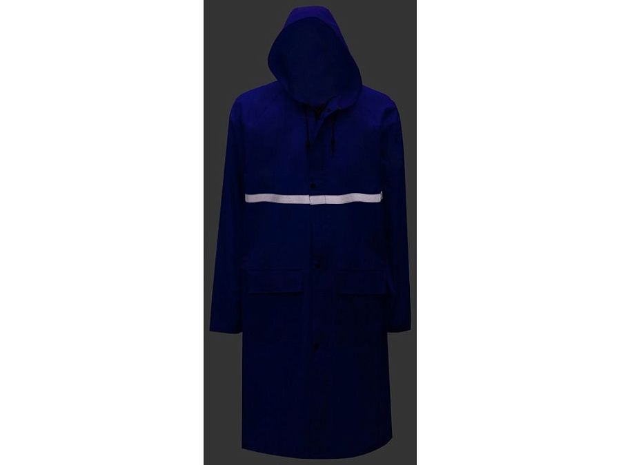 Светоотражающая тесьма на груди и спине делает человека в плаще заметным даже в темное время суток. Вместительные накладные карманы защищены сверху клапаном.