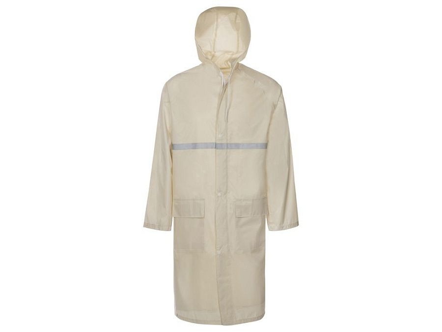 Светоотражающая тесьма на груди и спине делает человека в плаще заметным даже в темное время суток. Вместительные накладные карманы защищены сверху клапаном.