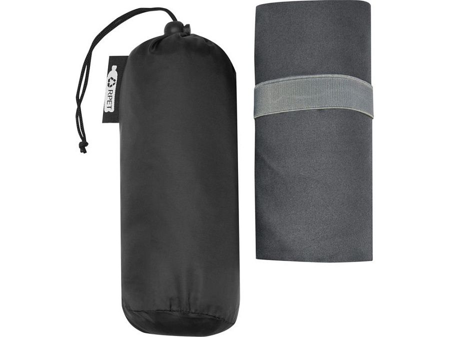 Это спортивное полотенце очень хорошо впитывает влагу, легкое, быстро сохнет. Кроме того, ткань прочная и чрезвычайно мягкая. Когда полотенце сложено и закреплено резинкой, оно уменьшается до небольшого размера, поэтому его удобно брать с собой в тренажерный зал, бассейн, на пешую прогулку или в поход. Полотенце имеет размер 130 x 80 см и изготовлено из переработанного РЕТ-полиамида плотностью 200 г/м2, его можно стирать в стиральной машине при 40 °C. Поставляется с сумкой для хранения (20 x 8,5 см) из переработанного РЕТ-пластика, на которой достаточно места для нанесения логотипа.