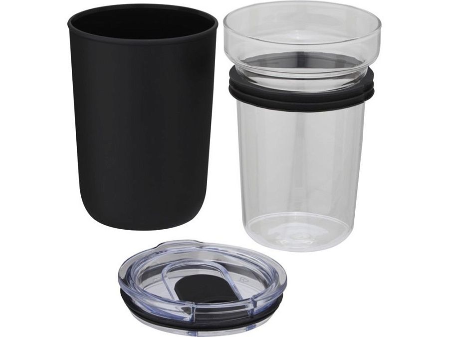 Стеклянная кружка в защитном чехле из переработанного пластика. Кружка изготовлена из прочного 100% боросиликатного стекла, которое не содержит вредных химических веществ и сохраняет свежесть напитка. Не содержит БФА, испытана и одобрена в соответствии с немецким законодательством о безопасности пищевых продуктов (LFGB). Проверена на содержание фталатов и одобрена для использования в соответствии с правилами REACH. Кружка подходит для большинства кофе-машин. Объем 420 мл. Сняв пластиковый чехол, кружку можно мыть в посудомоечной машине. В подарочной коробке из переработанного картона.
