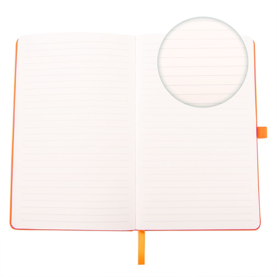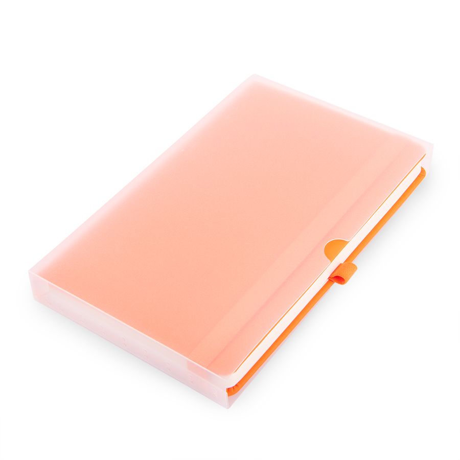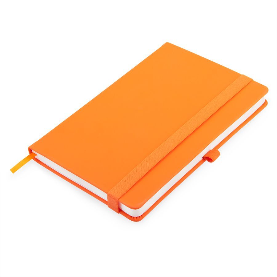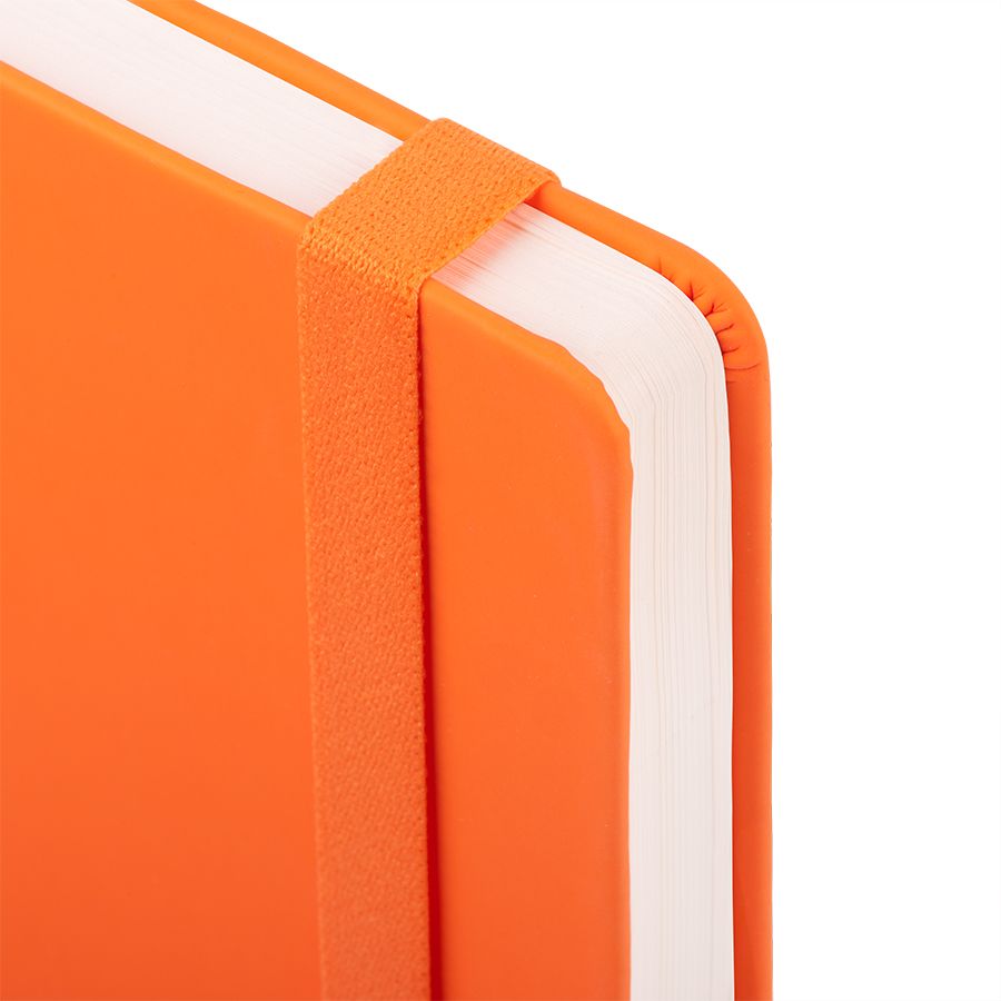 Самый популярный блокнот в твердой обложке, с эластичной резинкой, пенхолдером и ляссе в тон.Термоактивный классический PU материал Silk PlusЦвет обложки, близкий к Pantone 158CВнутренний блок 256 страниц в линейкуИдеально скругленные углы блокаПерфорированные 8 последних листовКремовая FSC бумага 70г м2Карман для мелочейИндивидуальная упаковка: прозрачный сливбокс