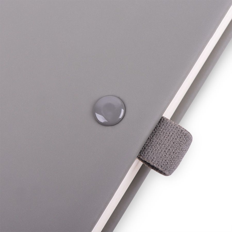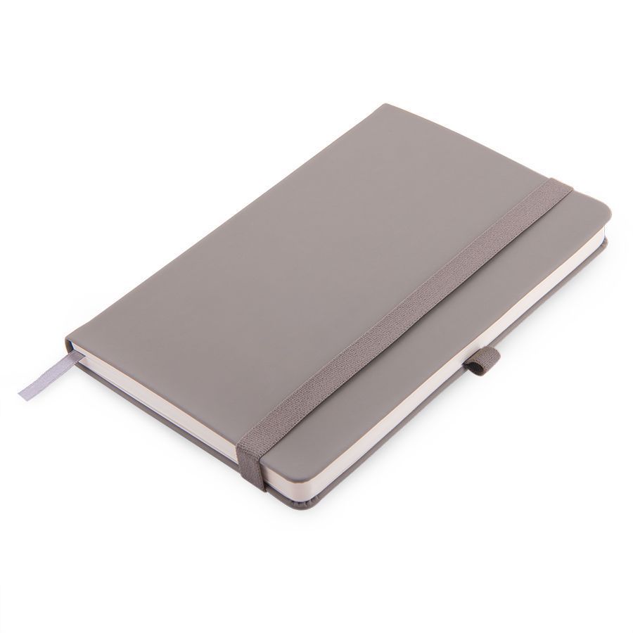 Самый популярный блокнот в твердой обложке, с эластичной резинкой, пенхолдером и ляссе в тон.Термоактивный классический PU материал Silk PlusЦвет обложки, близкий к Pantone 423CВнутренний блок 256 страниц в линейкуИдеально скругленные углы блокаПерфорированные 8 последних листовКремовая FSC бумага 70г м2Карман для мелочейИндивидуальная упаковка: прозрачный сливбокс