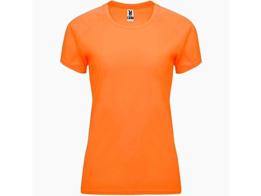 Спортивная футболка с коротким рукавом реглан для женщин. Круглый вырез горловины с отделкой плоским швом. Рукав сложного кроя для обеспечения дополнительного удобства при занятиях спортом. Отделка плоским швом с застилом по пройме и рукавам.