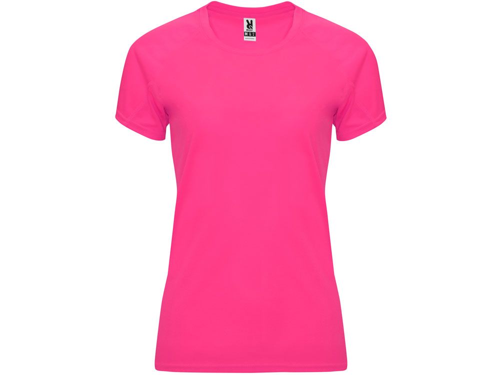 Спортивная футболка с коротким рукавом реглан для женщин. Круглый вырез горловины с отделкой плоским швом. Рукав сложного кроя для обеспечения дополнительного удобства при занятиях спортом. Отделка плоским швом с застилом по пройме и рукавам.