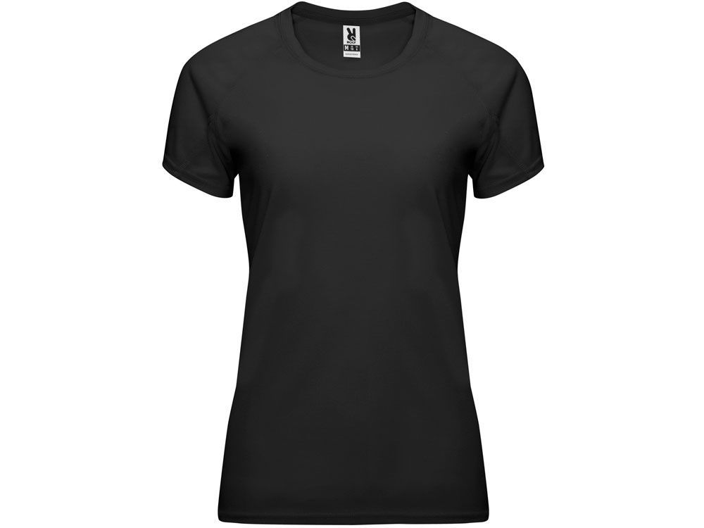 Спортивная футболка с коротким рукавом реглан для женщин. Круглый вырез горловины с отделкой плоским швом. Рукав сложного кроя для обеспечения дополнительного удобства при занятиях спортом. Отделка плоским швом с застилом по пройме и рукавам.