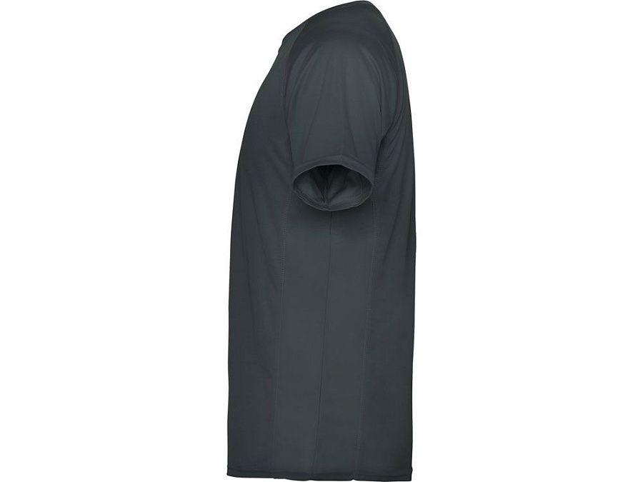Спортивная мужская футболка с коротким рукавом реглан. Круглый вырез горловины и боковая вставка с отстрочкой плоским швом.