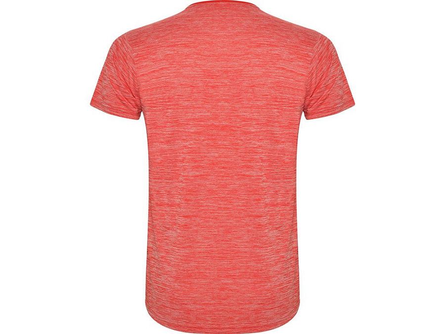 Футболка с коротким рукавом из технологического полотна. Круглый вырез горловины. Комбинация двух полиэстеровых полотен. Основное полотно на полочке со структурой, дополнительное полотно на спинке, рукавах и плечах с меланжевым эффектом. Задняя часть немного длиннее. Легко сохнущее дышащее полотно.