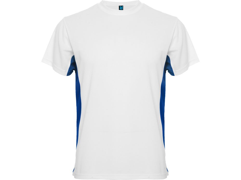 Спортивная футболка из технологического полотна и колорблок вставками. Круглый вырез горловины укреплен тесьмой. Контрастные вставки по бокам. Дышащее технологичное полотно - легко стирается и быстро сохнет.