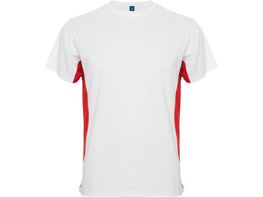 Спортивная футболка из технологического полотна и колорблок вставками. Круглый вырез горловины укреплен тесьмой. Контрастные вставки по бокам. Дышащее технологичное полотно - легко стирается и быстро сохнет.