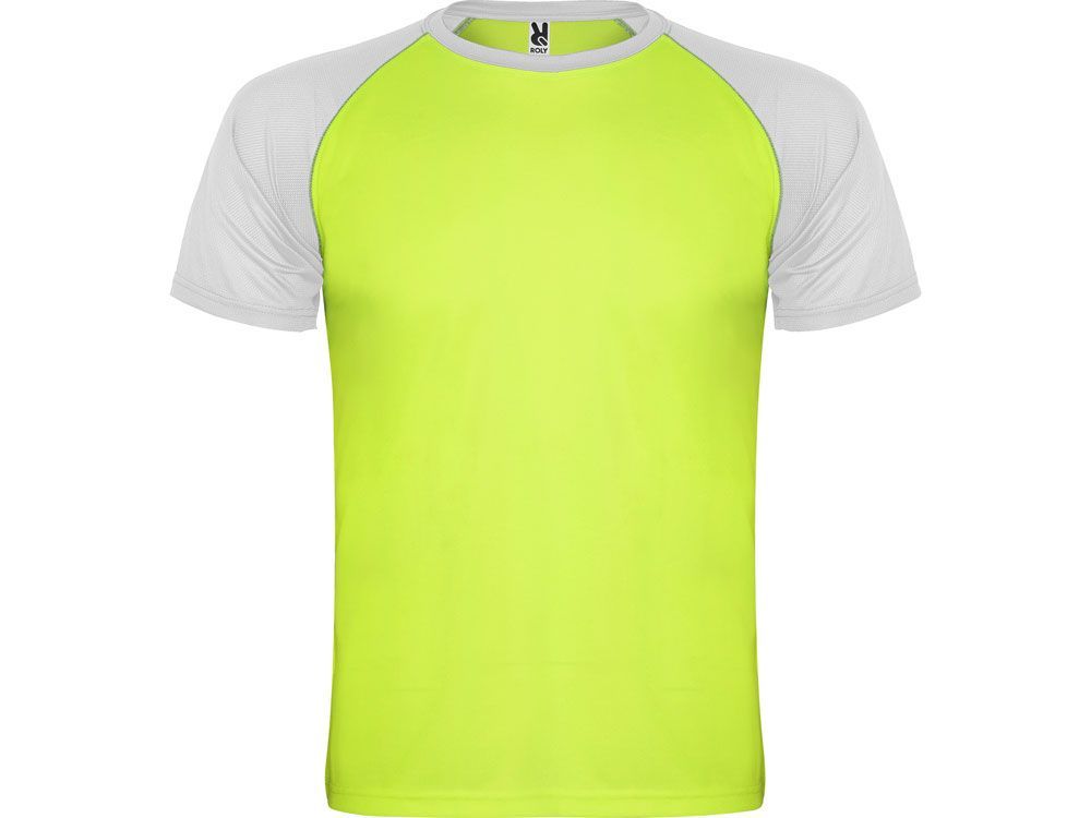Спортивная футболка с контрастным рукавом реглан. Круглый вырез горловины с контрастной тесьмой. Технологическое дышащее полотно.