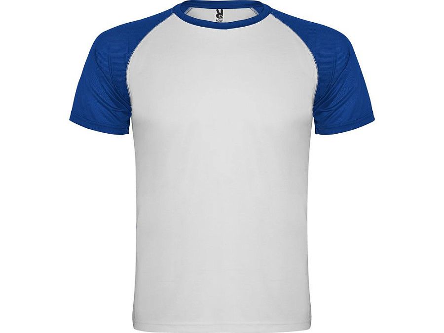 Спортивная футболка с контрастным рукавом реглан. Круглый вырез горловины с контрастной тесьмой. Технологическое дышащее полотно.