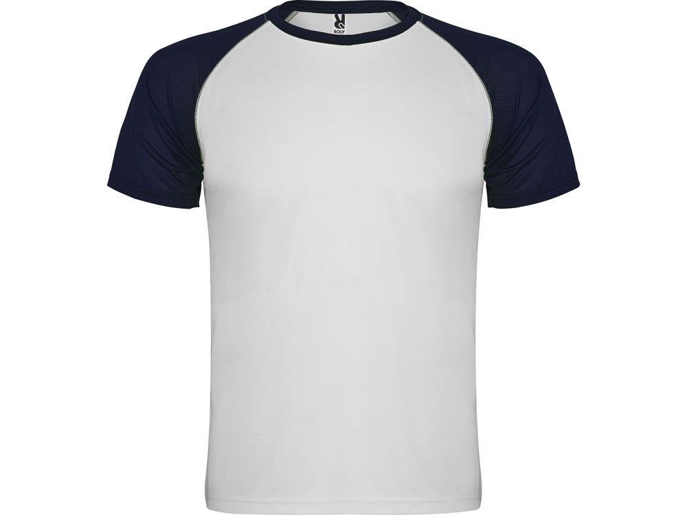Спортивная футболка с контрастным рукавом реглан. Круглый вырез горловины с контрастной тесьмой. Технологическое дышащее полотно.