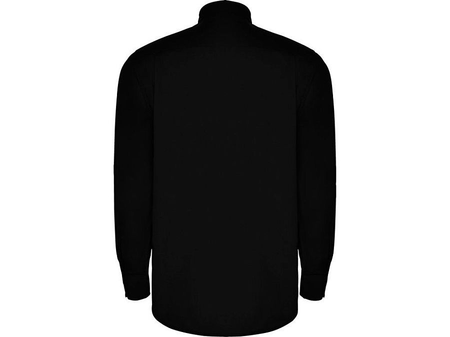 Рубашка мужская с длинным рукавом на семи пуговицах. Накладной карман на груди слева, закругленный низ изделия. Уголки воротника продублированы пуговицами.