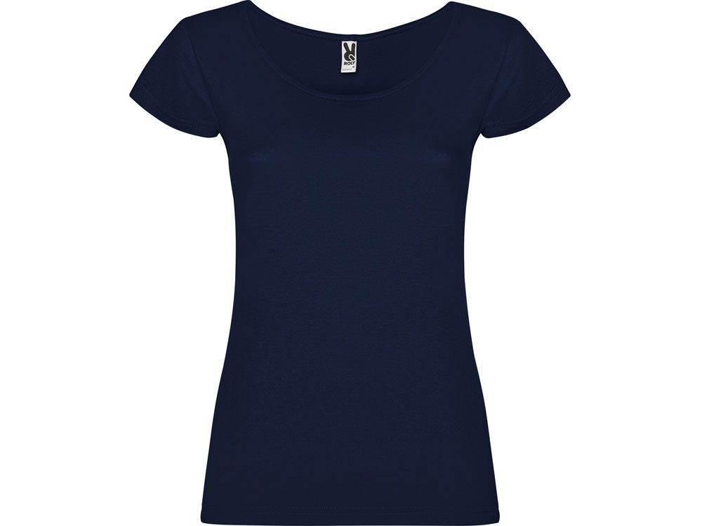 Прилегающая женская футболка с глубоким вырезом, обработанным рибом.